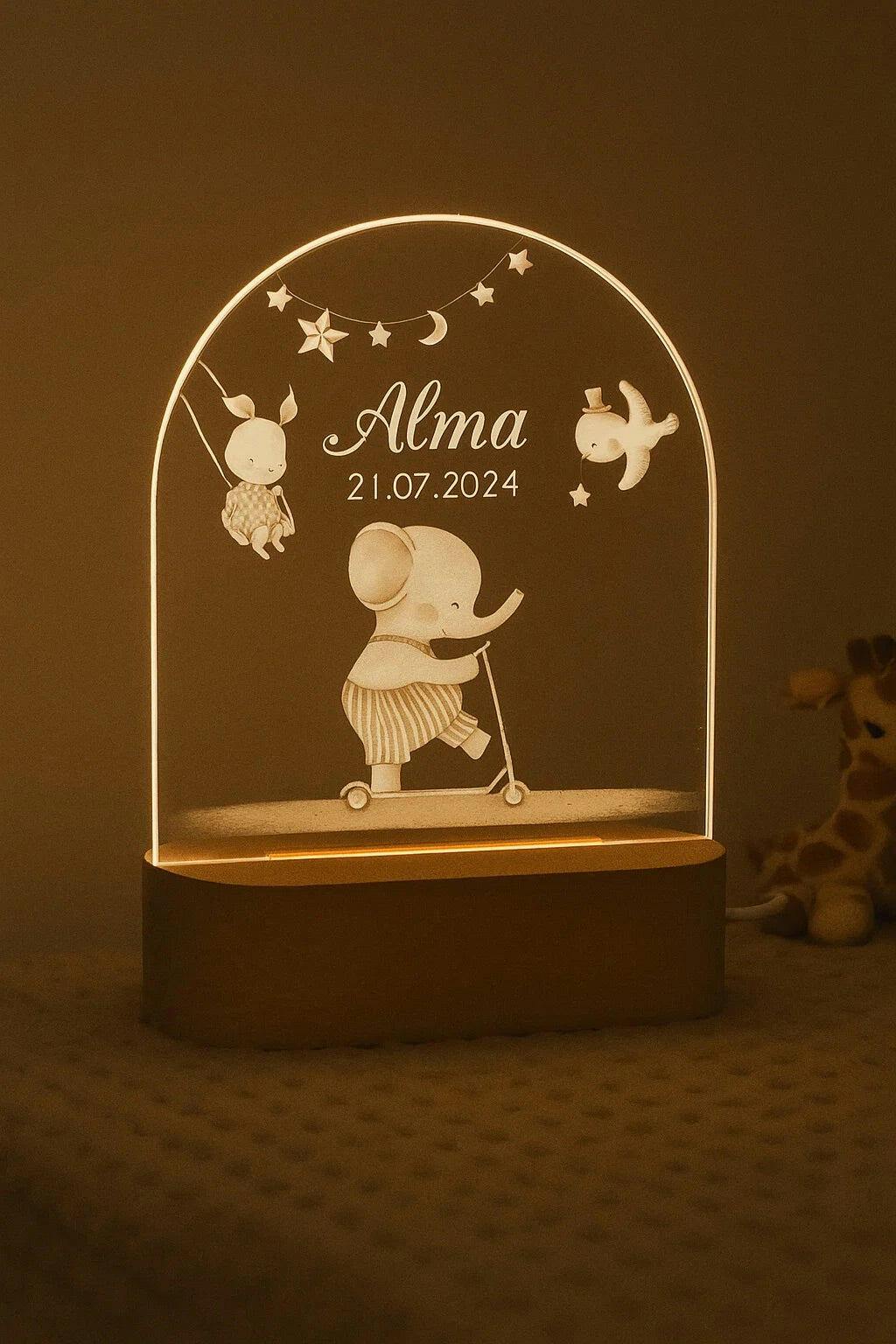 LED-Lampe Elefant – Personalisiertes Geschenk zur Geburt für Mädchen